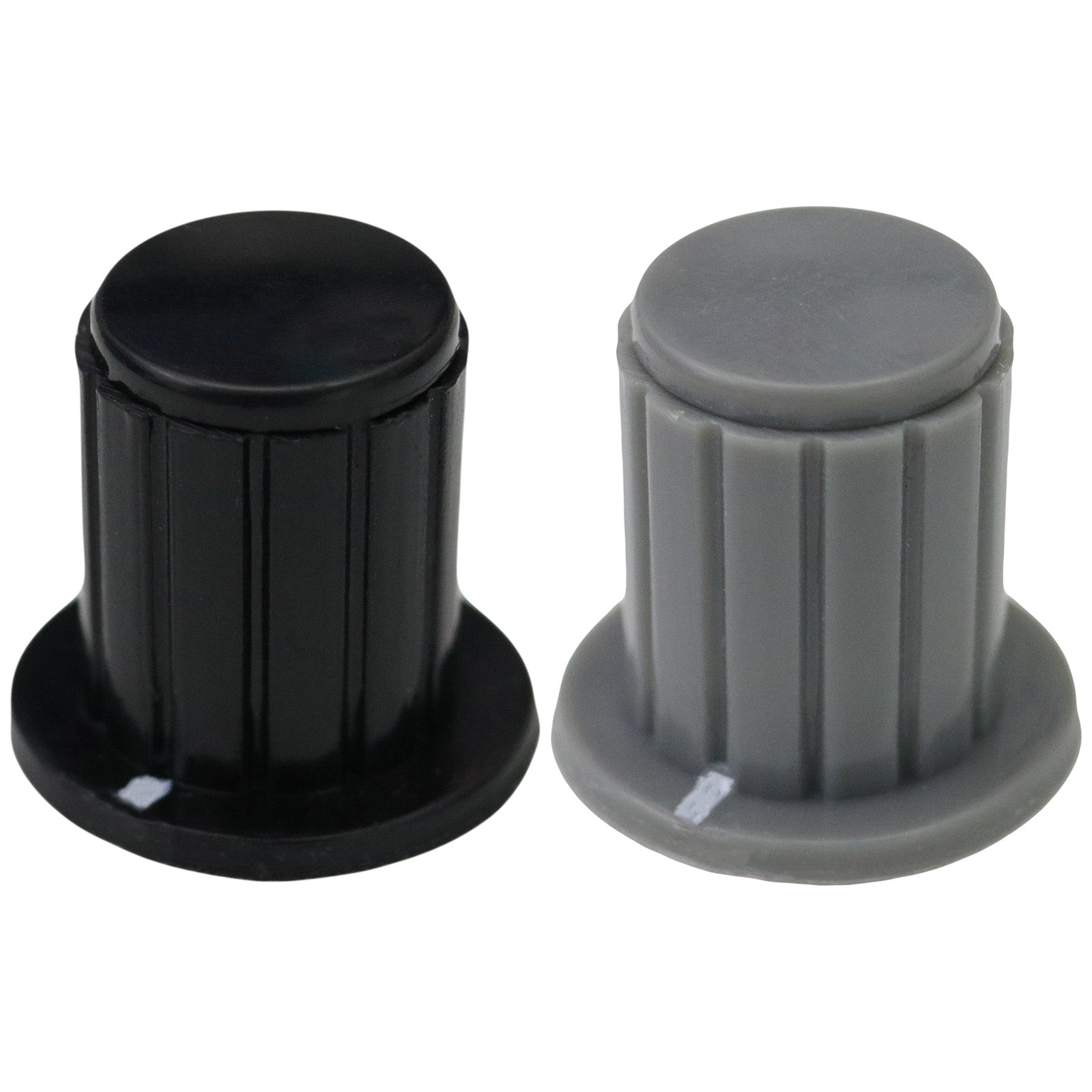 The knob's most notable visual feature is the square position indicator located on the outer edge of the base skirt, providing clear positional feedback during operation. This design makes it particularly well-suited for applications requiring precise control and clear visual reference, such as audio equipment, test instruments, and control panels where accurate positioning is essential. The collet fixing system accommodates slight variations in shaft diameter whilst maintaining a secure connection.