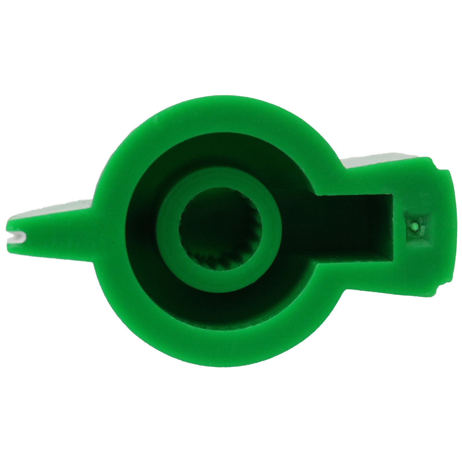 The circular main body houses a central splined shaft fitting, whilst the white position indicator provides clear visual reference against the vibrant coloured body. The knob's substantial grip area and extended pointer deliver exceptional control precision, making it particularly well-suited for applications requiring accurate adjustment and easy visual confirmation of settings. This design excels in guitar amplifiers, audio mixing equipment, and control panels where both functionality and visual appeal are paramount.